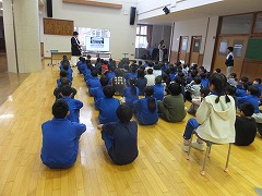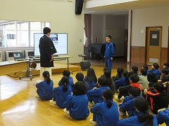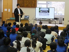 4月10日(金)、天神山天照御祖神社 禰宜 長谷川 悠さんに5年祭についてのお話をしていただきました。今回は2~6年生を対象に、「5年祭はどんなお祭りなのか」について、写真なども見せながら、かみ砕いて丁寧に教えていただきましたので、児童も最後まで興味深く話を聞きました。初めて聞くことが多く、5年祭について学ぶとてもよい機会になりました。