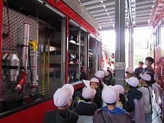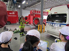 消防署の見学(3年生) 10月28日(火)、3年生は社会科の学習として、大船渡消防署を見学しました。火災などの災害への対応について説明していただいたり、消防車や消防服など火事を消すために必要な物を実際に見せていただいたりしました。ご対応いただいた消防署の皆様、ありがとうございました。