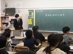 薬物乱用防止教室(6年生) 12月2日(火)、6年生を対象に「薬物乱用防止教室」を開催しました。講師は、本校の学校薬剤師 杉原圭祐 様、また、気仙地区保護司会から伊藤英子様にご来校いただきました。「たばこや酒の害」「正しい薬の服用」「大麻について」など、プレゼンテーション及び動画で詳しく教えていただきました。
