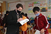 | この日がジュリアン先生が綾里小学校で外国語指導をする最後の日となりました。3・4年生の外国語活動、5・6年生の英語科の授業にALTとして参加してくださいました。 ジュリアン先生は日本語がとても上手で、授業の準備・工夫もよく、主たる授業者である学級担任の意をよく汲み取ってくださり、子どもたちの意欲を引き出してくださいました。半年間の短い期間でしたが、本当にありがとうございました。 ![]() ![]() ![]() ![]() 11月から大船渡市にもう一人ALTが配属されるため、ALTの担当学校が再編成されます。11月17日からはリサ先生という方にお世話になります。楽しみです。 |