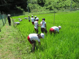 | 11月30日(火)の午後、5年生が「つむぎの家」に行き、米の収穫祭を行いました。今年6月に田植えをし、この間、雑草とりをしながら米の生育を見てきました。10月には稲刈りも体験しました。脱穀は千田さんにお願いしました。この日に行ったのは、もち米を炊くための薪割り、味の下ごしらえ、もちつき、そして会食。千田さんご夫妻の協力を得ながら自分たちで育てたもち米で作ったおもち。満足そうに食べる5年生でした。 <耕基さん・永久世さんへ> 「おもちをつくるために一番大変だった作業は、もちつきです。なぜなら、ぼくの出番は最後の方だったので、もち米がほとんどおもちになっていました。だからねちょねちょしていて杵を持ち上げる時が大変でした。まき割りのときは、おのだけを振るのではなく腰も一緒に下げるときれいに割れることが分かりました。ぼくが一番おいしいと思ったおもちは、大根おろしときなこでした。おもちのつきかたやまき割りの仕方を教えていただき、ありがとうございました。(5年児童)」 ![]() ![]() ![]() ![]() なお、この活動はつむぎの家のホームページにも掲載されています。 |