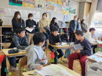 力也さんにお願いをしました。伊藤さんは,綾里の先人の足跡について触れてお話をしてくださり,その歴史が現在にも根付いていることを教えてくださいました。五年祭や体育祭といった行事等を見ても,綾里小学校は,昔から地域の中心という存在であったことを知り,地域への影響力の大きさを子どもたちは感じ取った様子でした。