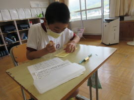 2~5校時に祖父母交流会が行われました。1・2年生は昔遊び。3・4年生はつむぎの家の千田ご夫妻を講師としてお迎えしての木工細工。5年生は縫い物。6年生はしおりづくりを行いました。多くのおじいさん,おばあさん方に来校していただき,お孫さんと共に活動や作業にあたる姿は何とも微笑ましく見えました。上手に作品を作るおじいさん,おばあさんの姿を見てとても喜んでいる子どもたちの姿もありました。普段の温かいご家庭の様子が垣間見えるとても良い交流会となりました。