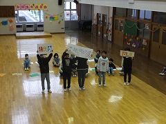 1年生は、メダル作り、2年生は招待状の作成、3年生は会場装飾、4年生は似顔絵の貼り出し、5年生は6年生の似顔絵作成、そして、全校取組として縦割り班メンバーの寄せ書きなど、新執行部を中心に様々準備をしました。また、工夫を凝らした楽しい発表や心温まるメッセージを送り、6年生への感謝の気持ちをしっかりと伝えました。