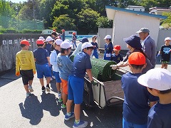 プールの片付け(3・4年生) 9月22日(月)2校時、プールサイドに敷いていたマットを3・4年生が片付けました。プールの準備の際は、5・6年生の力を借りましたが、片付けは3・4年生が力を発揮しました。敷いていたマットを丸めて更衣室にしまったり、体育館・校舎通路などに運び、敷き直す作業を一生懸命に行いました。ありがとう!!